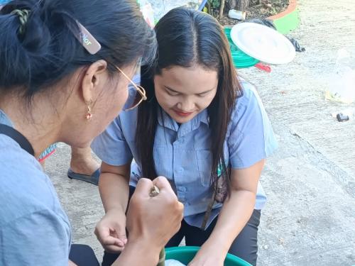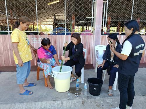 สำนักงานพัฒนาชุมชนอำเภอน้ำยืน ร่วมสาธิตการทำน้ำยาล้างจาน เสริมทักษะอาชีพผู้อพยพจากภัยความไม่สงบพื้นที่ชายแดน