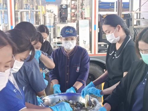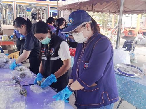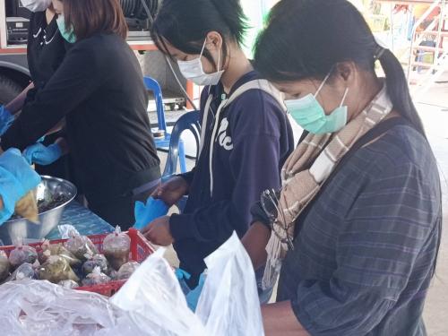 นางสาวราตรี เกตวิริยะการ รักษาการในตำแหน่งพัฒนาการอำเภอน้ำยืน เจ้าหน้าที่พัฒนาชุมชน ผู้นำอาสาพัฒนาชุมชน ร่วมบรรจุอาหาร และจัดสรรวัตถุดิบสำหรับประกอบอาหารให้กับประชาชนที่ได้รับผลกระทบจากสถานการณ์ชายแดนไทย - กัมพูชา ซึ่งพักอาศัยอยู่ในศูนย์พักพิงชั่วคราวในพื้นที่อำเภอเดชอุดม